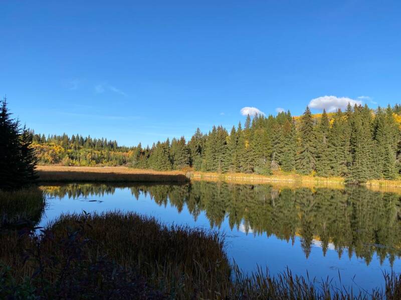 Next we went to meet our hosts for the next two nights: Ed and Carol Bath. Ed, a reader, welcomed us into their home and helped us settle in. We then took a trip out to Cypress Hills and their summer cabin. Set in this vista of trees and rolling hills. A walk (3km) with Ed showed us the river/creek heading south, through the area. The trees starting to turn to the 'fall' colours