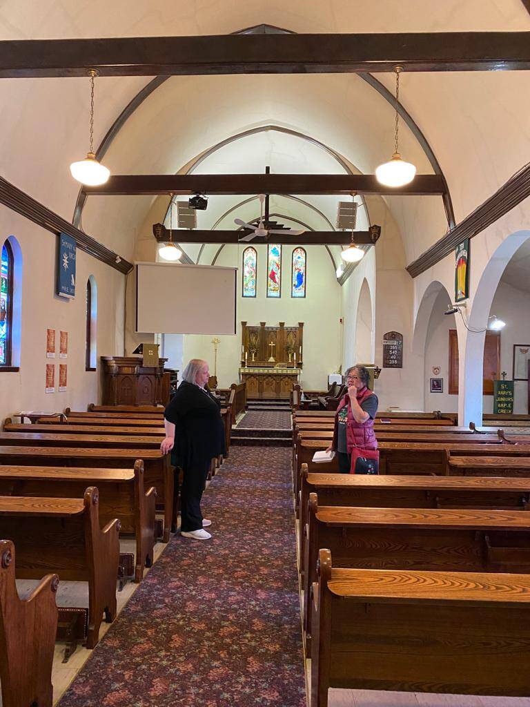 Outside St Marys and inside St Marys with interim minister Rev Nancy Yee.